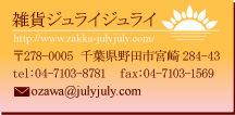 いらっしゃいませ、「雑貨ジュライジュライ」です。 ハンドメイドのストラップやチャームを中心に 色々な「雑貨」を扱っていきたいと思います。