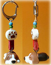 こちらは犬マスコット付きのスエード革タイプのキーホルダーです。