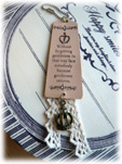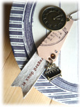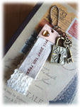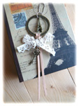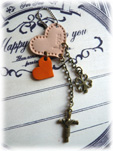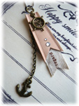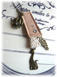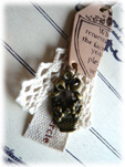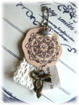 アンティークゴールドの金属チャームに革やレース、ラインストーン等を
