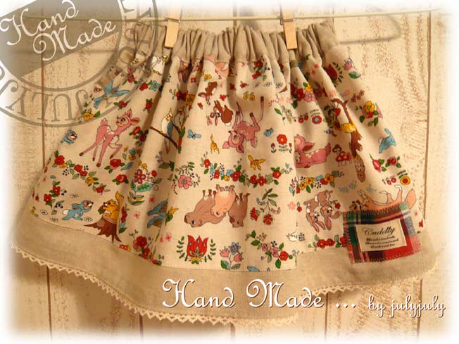 コットンリネン(綿麻)の可愛い動物達がいっぱいの子供用スカートです。