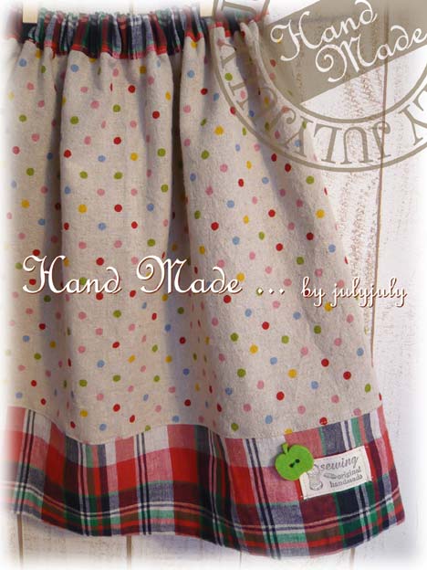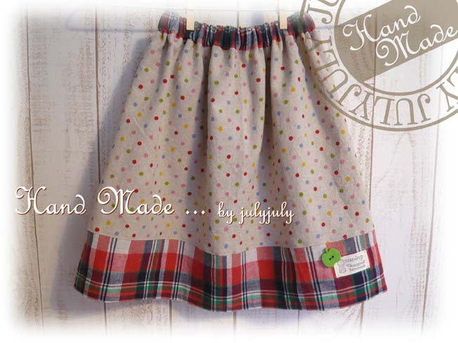 コットンリネン(綿麻)のドットとチェックの子供用スカートです。